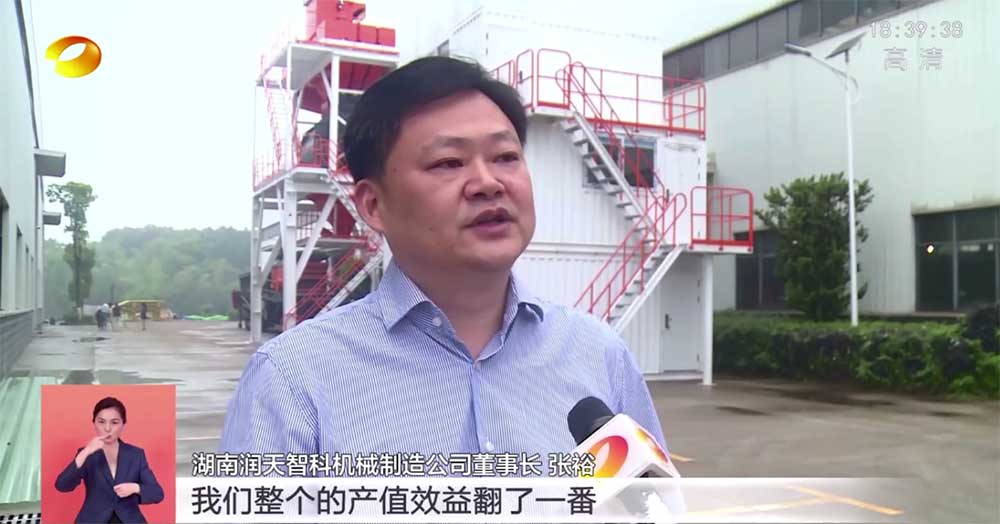 湖南潤(rùn)天智科機(jī)械制造有限公司董事長(zhǎng)張總接受湖南新聞聯(lián)播采訪